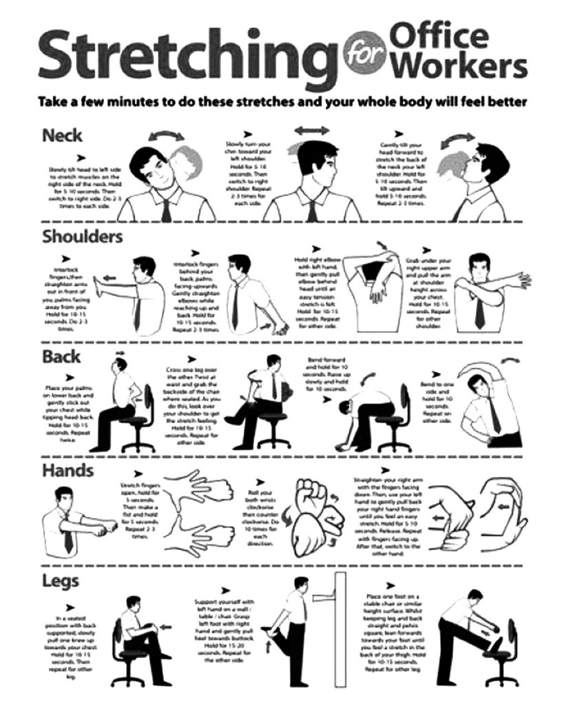 • Neck and upper back stretches to relieve tension.